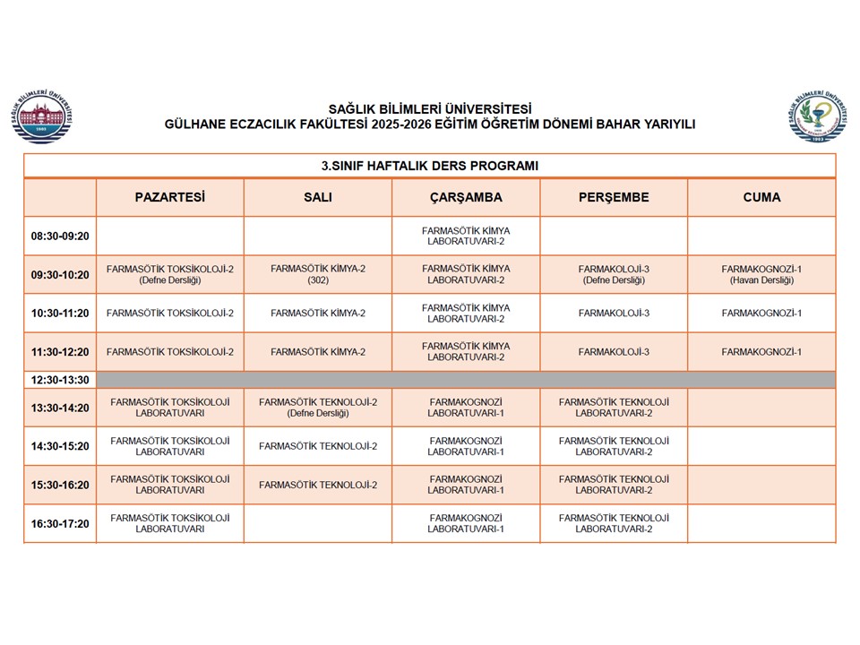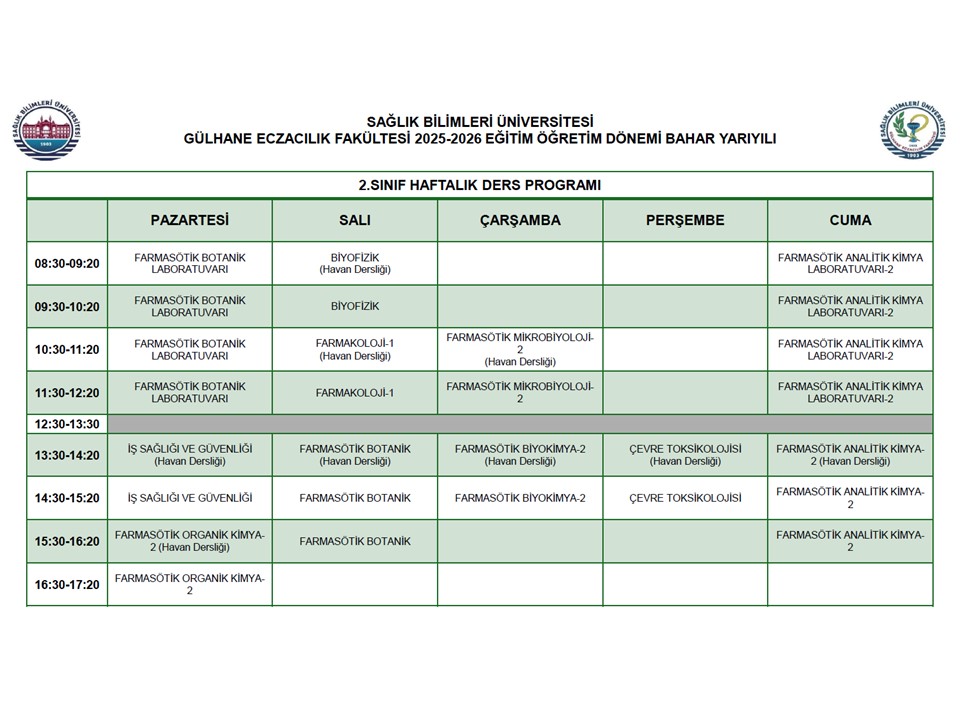 BAHAR YARIYILI DERS PROGRAMI